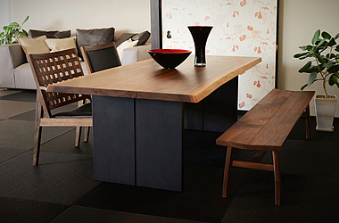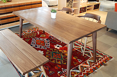 モダンなウォールナット無垢材3枚剥ぎテーブル