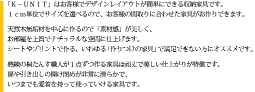> 天然木のオーダー家具「K-UNIT」